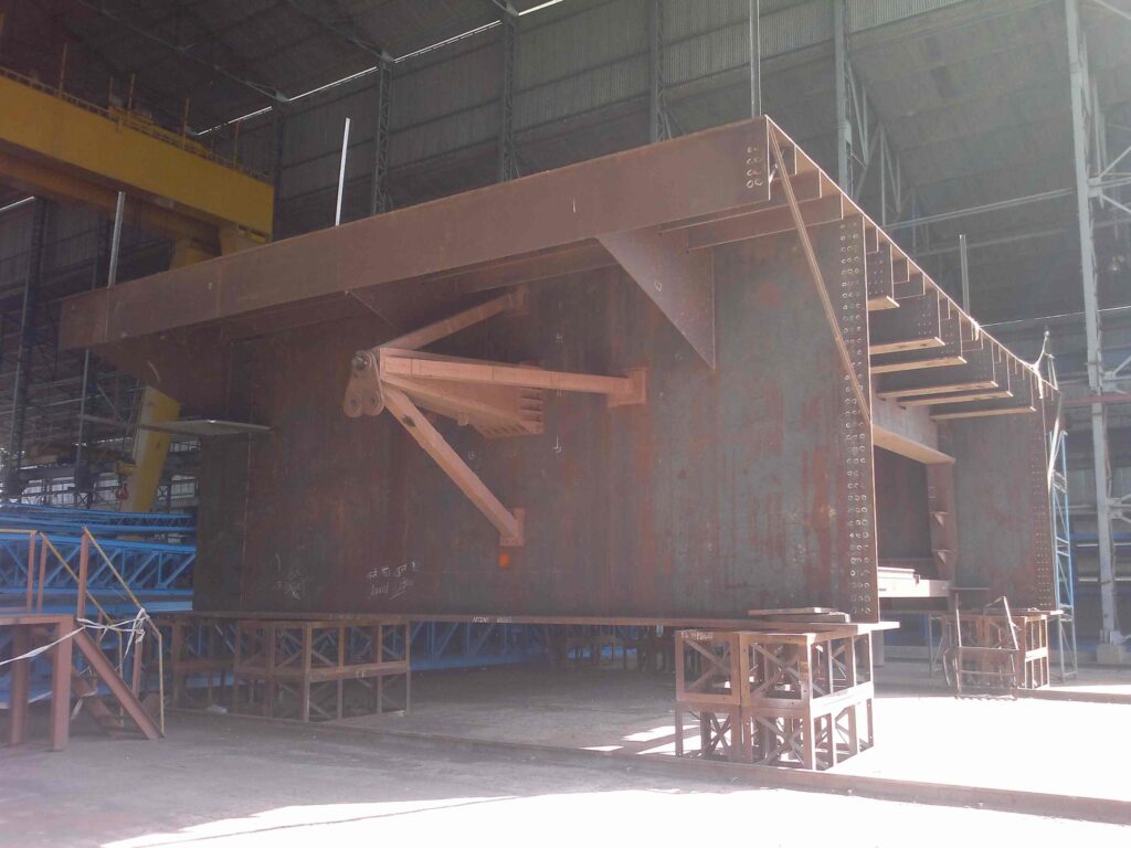 GULLCO’s KBM-28 beveling machines also played a vital role for edge preparation of the plate used in the box sections. At a thickness of 8mm to 50mm. The bevellers produced clean machined bevels with no thermal distortion or heat affected zone. This meant that after the material was beveled it was immediately ready for welding. Completing these bevels at a speed of 2m/min this cold shearing method of plate preparation is the most time efficient way of beveling the plate and is 4 to 10 times faster than cutting or grinding and improves work environment by reduce noise and vibration.